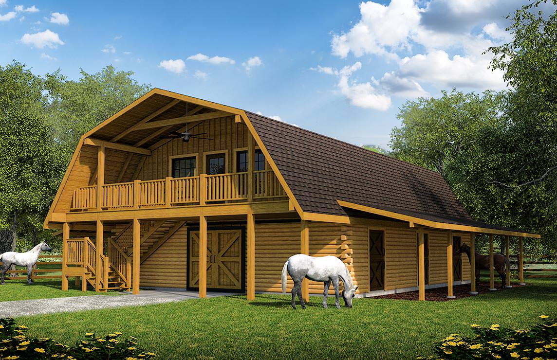 Log barns are the perfect complement for a log home and add useful utility space for equipment and machinery, or they can be finished out for horse or livestock care.