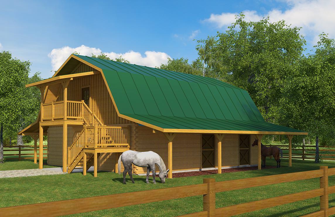 A surprising number of people begin development of their property by building a log barn, perhaps planning to build their log home at a later date, or timed for retirement. Some of our log barn designs include an apartment in the loft space, which can serve as a 2nd home, guest quarters, or even a primary residence.